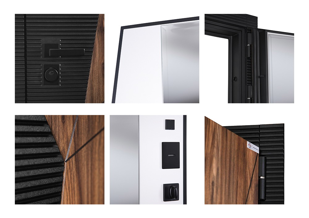 Дверная коробка: 3 контура уплотнения. Толщина (глубина) коробки 118 мм. | Петли: 3 петли с подшипником | Полотно: 100 мм. | Покрытие: Порошковое покрытие "муар черный". | Внутренняя отделка: Экошпонированная панель МДФ 16 мм (цвет "белый матовый"). Большое зеркало с фацетированием. | Замок нижний: Механический Galeon 816 (цилиндровый). Замковая часть адаптирована под замену на биометрическую дверную ручку Smart lock T888 (ручка приобретается отдельно) или биометрический врезной замок Smart lock DZ 888 (замок покупается отдельно). Также можно произвести замену на биометрические замки моделей Smart lock Y12 или Smart lock Y23 (биометрический замок покупается отдельно в комплекте с механическим замком Galeon 809 (цилиндровый). | Замок верхний: Galeon 817 (сувальдный). | Фурнитура: Ручка, ночная задвижка, глазок на квадратной розетке (цвет «черный»). Смотрите также: ДВЕРНЫЕ ГАДЖЕТЫ | Дополнительно: Евроцилиндр К-В перфокарта. Броненакладка врезная. Штырь противосъемный (3 шт). Порог из нержавеющей стали (цвет "хром"). | Утепление: Базальтовый утеплитель. | Размер и вес блока: 2050мм х 880мм - 100кг; 2050мм х 960мм - 110кг. | Упаковка: 2150мм х 1050мм х 140мм; 2150мм х 1130мм х 140мм. | Тип открывания: Правое и левое.