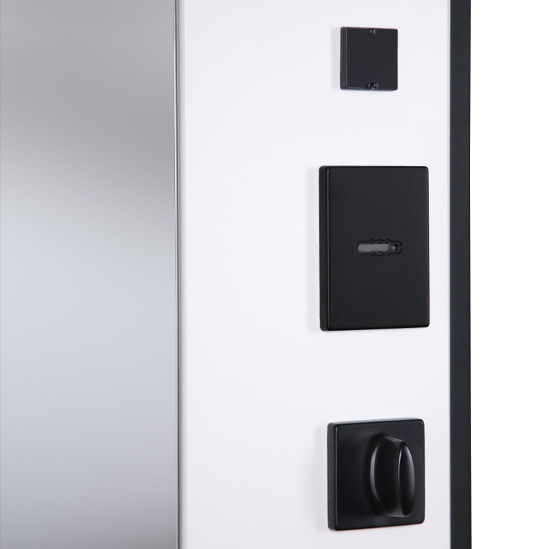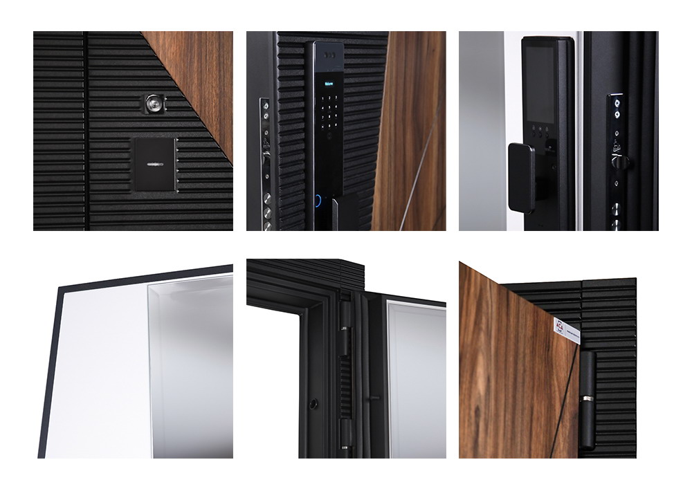 Дверная коробка: 3 контура уплотнения. Толщина (глубина) коробки 118 мм. | Петли: 3 петли с подшипником | Полотно: 100 мм. | Покрытие: Порошковое покрытие "муар черный". | Внутренняя отделка: Экошпонированная панель МДФ 16 мм (цвет "белый матовый"). Большое зеркало с фацетированием. | Замок нижний: Биометрический врезной замок Smart lock Y23. Замковая часть адаптирована под замену на биометрическую дверную ручку Smart lock T888 (ручка приобретается отдельно) или биометрический замок Smart lock DZ 888 (замок покупается отдельно). Также можно произвести замену на биометрический замок Smart lock Y12 (замок покупается отдельно в комплекте с механическим замком Galeon 809 (цилиндровый). Биометрический замок также можно заменить на механический Galeon 816 (цилиндровый замок приобретается отдельно). | Замок верхний: Galeon 817 (сувальдный). | Фурнитура: Ручка, ночная задвижка, глазок на квадратной розетке. Цвет «черный». Смотрите также: ДВЕРНЫЕ ГАДЖЕТЫ | Дополнительно: Евроцилиндр К-В перфокарта. Броненакладка врезная. Штырь противосъемный (3 шт). Порог из нержавеющей стали (цвет "хром"). | Утепление: Базальтовый утеплитель. | Размер и вес блока: 2050мм х 880мм - 100кг; 2050мм х 960мм - 110кг. | Упаковка: 2150мм х 1050мм х 140мм; 2150мм х 1130мм х 140мм. | Тип открывания: Правое и левое.