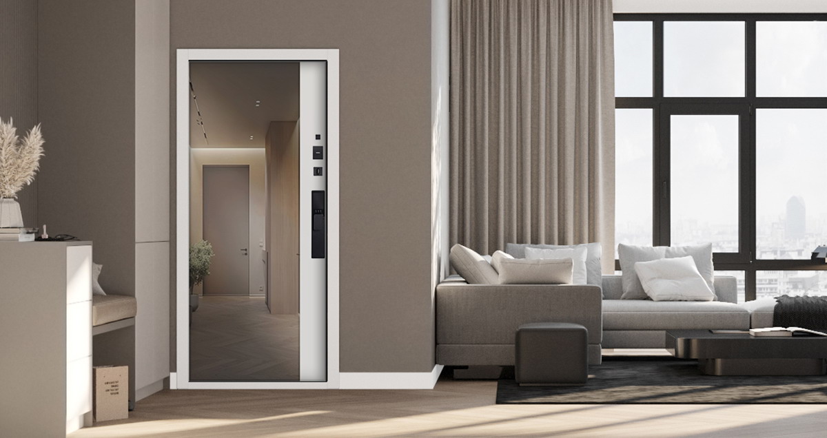 Стальная дверь "Берилл" с зеркалом (биометрический замок Y23). Заказная модель.