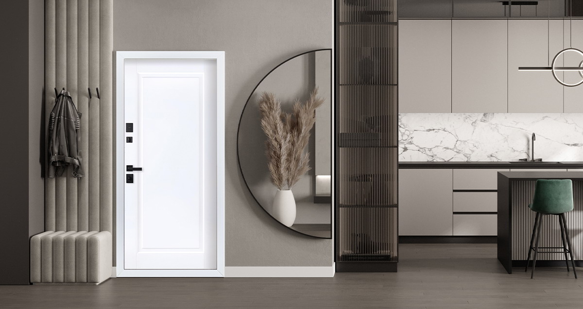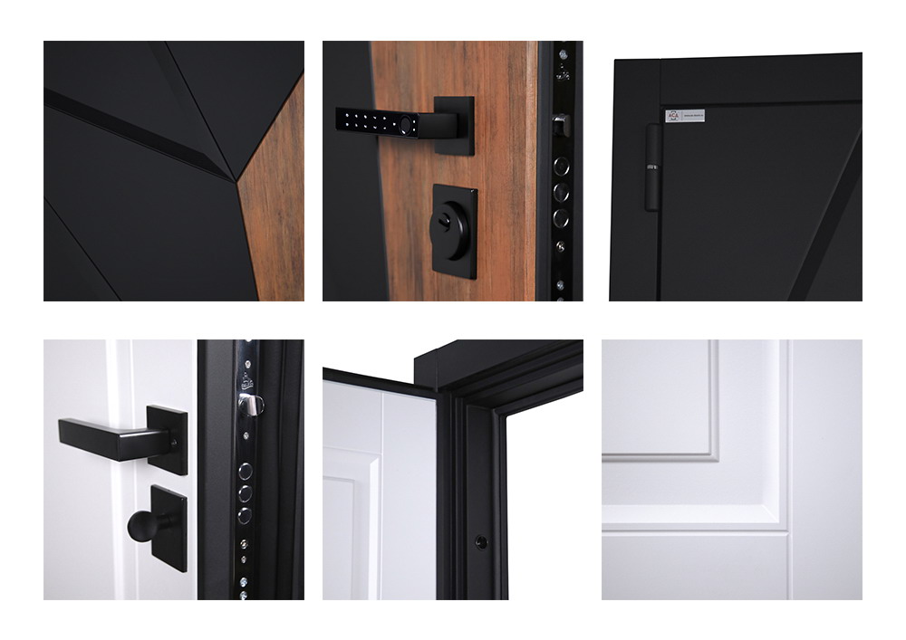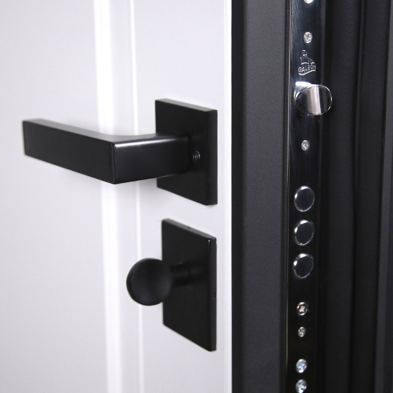 Тип открывания: Правое и левое. | Дверная коробка: 3 контура уплотнения.Толщина (глубина) коробки 118 мм. | Петли: 3 петли с подшипником | Полотно: 100 мм. | Покрытие: Порошковое покрытие "Муар черный". | Внутренняя отделка: Экошпонированная панель МДФ 10 мм. Цвет "белый матовый". | Замок нижний: Умная дверная ручка с отпечатком пальца модель Smart lock T888 Черная. | Замок верхний: Galeon 817 (сувальдный). | Фурнитура: Ручка, ночная задвижка, глазок на квадратной розетке. Цвет «черный». Смотрите также: ДВЕРНЫЕ ГАДЖЕТЫ | Дополнительно: Евроцилиндр К-В перфокарта. Броненакладка врезная. Штырь противосъемный (3 шт.). Порог из нержавеющей стали (цвет "хром"). | Утепление: Базальтовый утеплитель. | Размер и вес блока: 2050мм х 880мм - 100кг; 2050мм х 960мм - 110кг. | Упаковка: 2150мм х 1050мм х 140мм; 2150мм х 1130мм х 140мм.