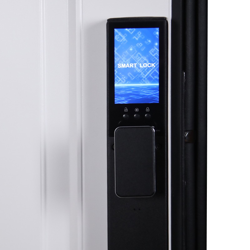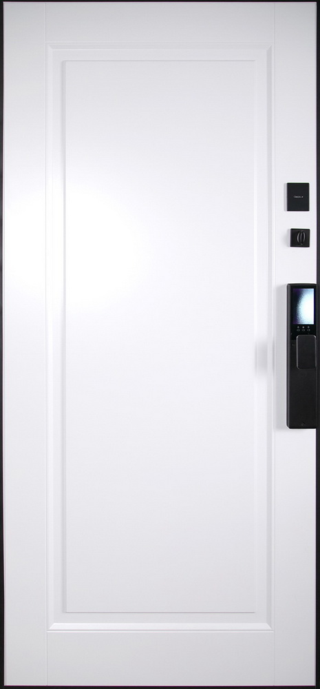 Тип открывания: Правое и левое. | Дверная коробка: 3 контура уплотнения.Толщина (глубина) коробки 118 мм. | Петли: 3 петли с подшипником | Полотно: 100 мм. | Покрытие: Порошковое покрытие "Муар черный". | Внутренняя отделка: Экошпонированная панель с фрезеровкой , МДФ 16 мм. Цвет "белый матовый ". | Замок нижний: Установлен биометрический замок Smart lock К 06 Замковая часть адаптирована под замену на биометрическую дверную ручку Smart lock T888 (ручка приобретается отдельно) или биометрический врезной замок Smart lock DZ 888 (замок покупается отдельно) или биометрический врезной замок Smart lock Y12 (замок покупается отдельно). Также можно произвести замену на биометрический замок модель Smart lock Y23 (биометрический замок покупается отдельно в комплекте с механическим замком Galeon 809 (цилиндровый). | Замок верхний: Galeon 817 (сувальдный). | Фурнитура: Ручка, ночная задвижка. Цвет «черный». Смотрите также: ДВЕРНЫЕ ГАДЖЕТЫ | Дополнительно: Евроцилиндр К-В перфокарта. Броненакладка врезная. Штырь противосъемный (3 шт.). Порог из нержавеющей стали (цвет "хром"). | Утепление: Базальтовый утеплитель. | Размер и вес блока: 2050мм х 880мм - 100кг; 2050мм х 960мм - 110кг. | Упаковка: 2150мм х 1050мм х 140мм; 2150мм х 1130мм х 140мм.